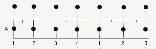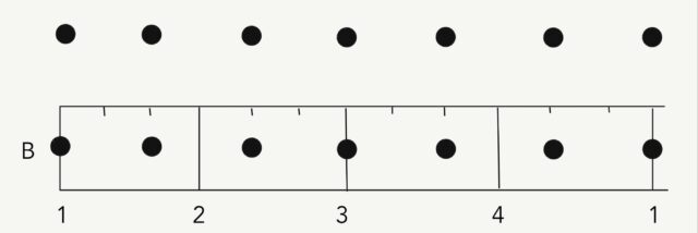 2段目のAは、メトロノームを素直に受け取ったときに形成される基本的なリズム。